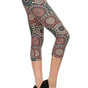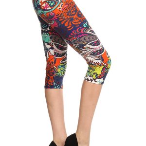 Multi-Color Ornate Print Cropped Length Fitted Leggings With High Elastic Waist.
