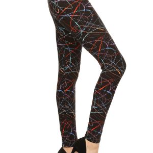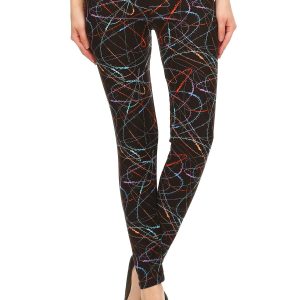 Multicolored Scribble Print, High Waisted Leggings In A Fitted Style With And Elastic Waist