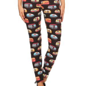 Multicolored Campers Printed, High Waisted Leggings In A Fit Style, With An Elastic Waistband