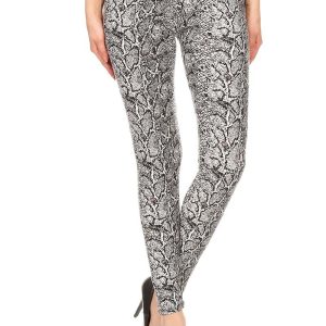 Snakeskin Print, Full Length, High Waisted Leggings In A Fitted Style With An Elastic Waistband