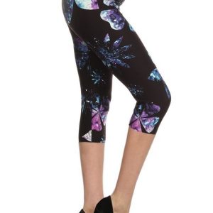 Galaxy Silhouette Floral Printed, High Waisted Capri Leggings In A Fitted Style, With An Elastic Waistband