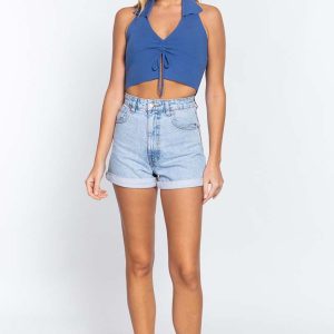 Halter Ruched Crop Sweater Knit Top