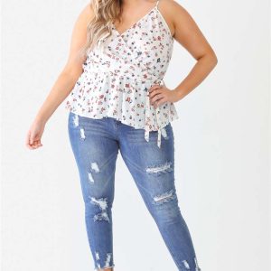 Linen Blend Mixed Animal Print Adjustable Spaghetti Strap Top