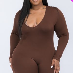 Plus Cotton Front Button Up Detail Sleeveless Jumpsuit