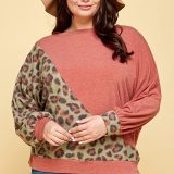 Plus Size Cute Animal French Terry Brush Contrast Print Pullover