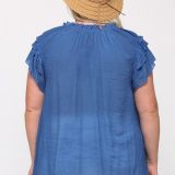 Triple Ruffle Sleeve V-Neck Top with Front Tie