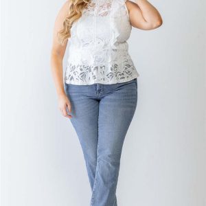 Plus Lace Mesh Ruffle Detail Sleeveless Flare Hem Top