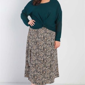Plus Hunter Green Flannel Ribbed Twisted Detail Top