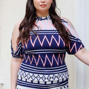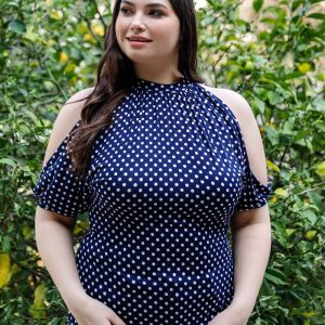 Plus Polka Dot Cold Shoulder Short Sleeve Back Self-Tie Top
