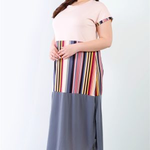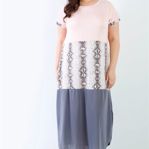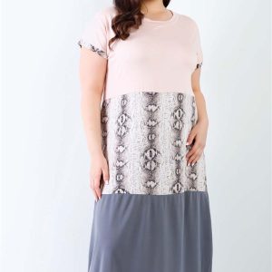 Plus Pink Print Colorblock Maxi Dress