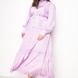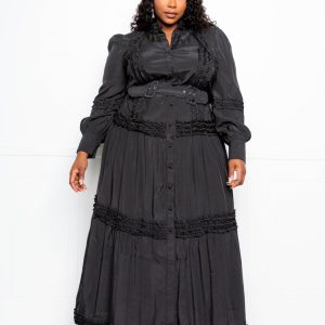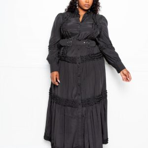 Belted Shirt Dress With Ruffle Detail