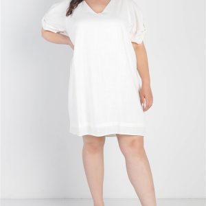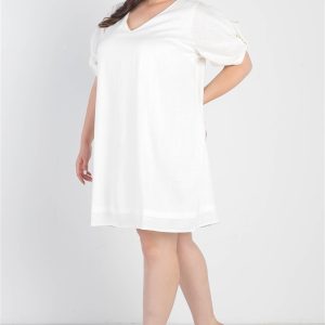 Plus White Bow Detail Short Sleeve V-Neck Mini Dress