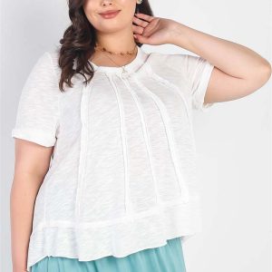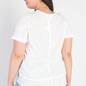 Plus White Trim Detail Round Neck Short Sleeve Top
