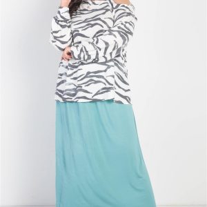 Plus White & Charcoal Zebra Flannel Cold Shoulder Long Sleeve Top
