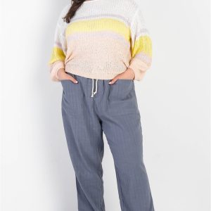 Plus White & Lemon Knit Stripe Long Sleeve Top