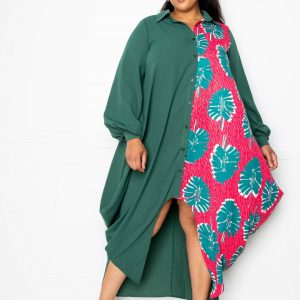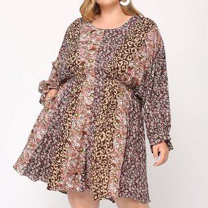 Print Mixed Dolman Sleeve Dress With Side Pockets