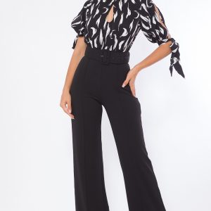 Print Top Featuring A Round Neckline And 3/4 Bell Sleeves