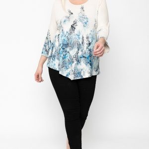 Print Top Featuring A Round Neckline And 3/4 Bell Sleeves