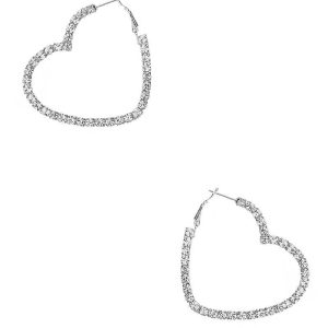 Rhinestone 5mm Side Crystal Heart Hoop Earring