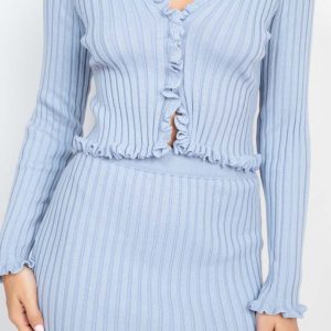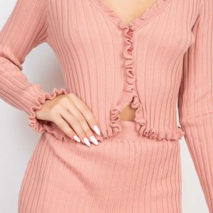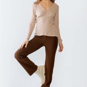 Sand Ribbed V-Neck Long Sleeve Soft To Touch Top