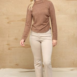 Solid And Cozy Soft Knit Mock Neck Top With Side Ruched Detail