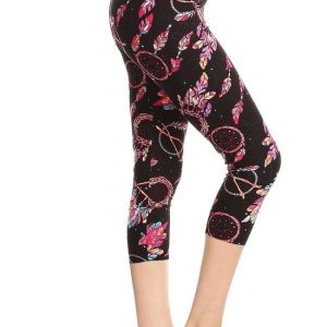 Yoga Style Banded Lined Dreamcatchers Printed Knit Capri Legging With High Waist