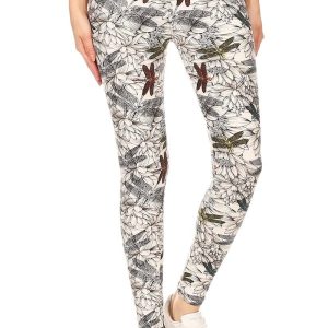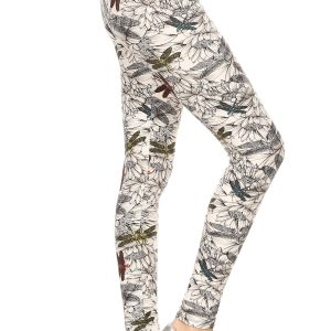 Yoga Style Banded Lined Dragonfly Print, Full Length Leggings In A Slim Fitting Style With A Banded High Waist