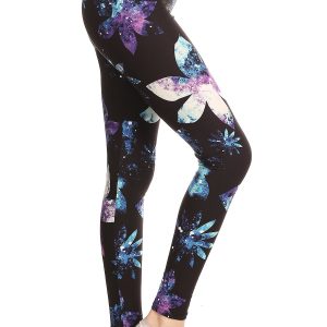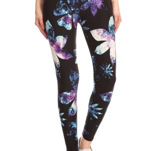 Yoga Style Banded Lined Galaxy Silhouette Floral Print, Full Length Leggings In A Slim Fitting Style With A Banded High Waist