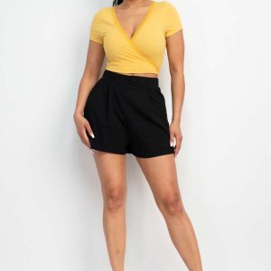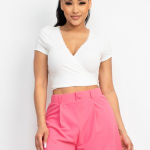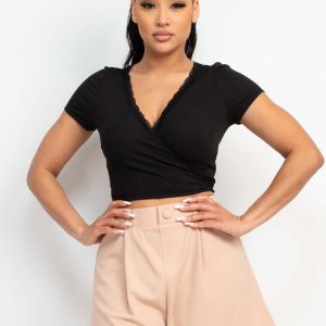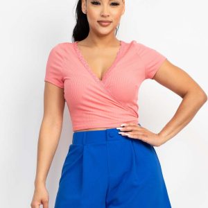 Wrap Surplice Lace Trim Top