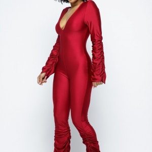Yoga Shoulder Padded Ruched Stacked Jumpsuit