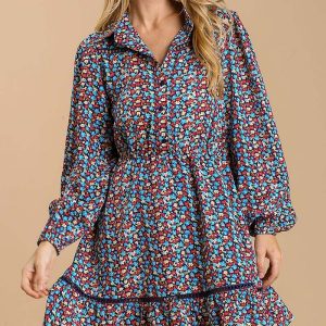 Color Block Floral Print Tiered Mini Dress