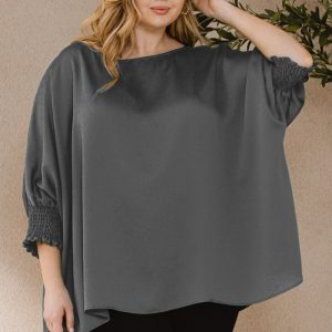 Ember Jacquard Solid Woven Oversized Boatneck 3/4 Sleeve Blouse