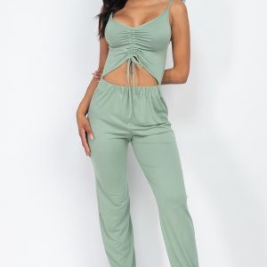 Front Ruched With Adjustable String Cami Casual/Summer Jumpsuit