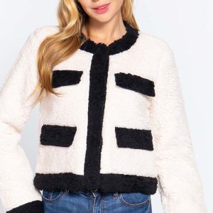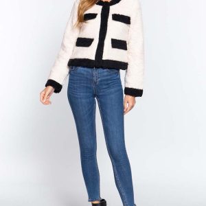 Long Sleeve Pocket Detail Faux Fur Jacket