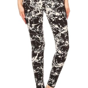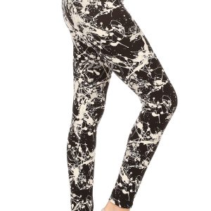 Long Yoga Style Banded Lined Paint Splatters Printed Knit Legging With High Waist