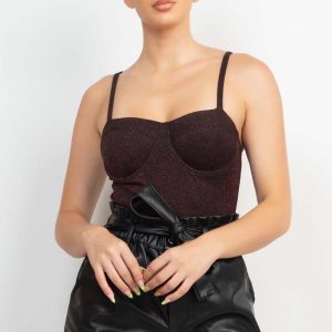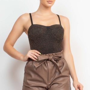 Lux Faux Leather Pu Zipup Strap Sleeveless Cropped Top