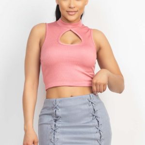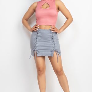 Mint Fuchsia Print Cotton Sleeveless Strappy Crop Top & High Waist Wrap Hem Mini Skirt Set