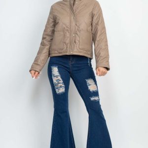 Mock Neck With Zipper Contrast Inside Front Pocket Plaid Poncho