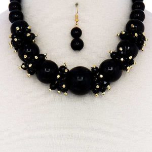 Multi Bead And Pearl Necklace Chocker And Earring Set