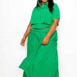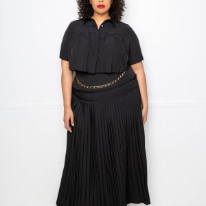 Pleated Cropped Shirt And Maxi Skirt Set