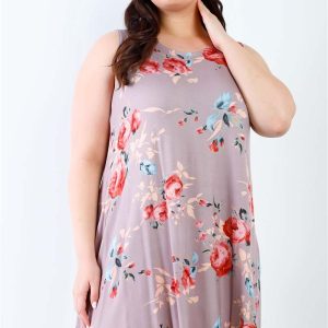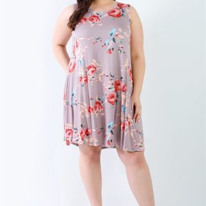 Plus Cocoa Flower Sleeveless Mini Dress