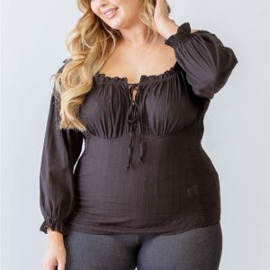 Plus Cotton Embroidery Off-The-Shoulder Smocked Back Top