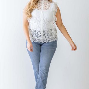 Plus Cotton Floral Lace Embroidery Detail Top