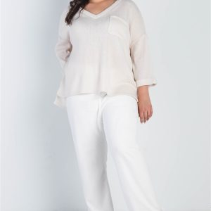 Plus Cream Knit V-Neck Pocket Front Top